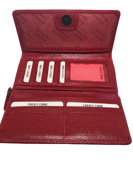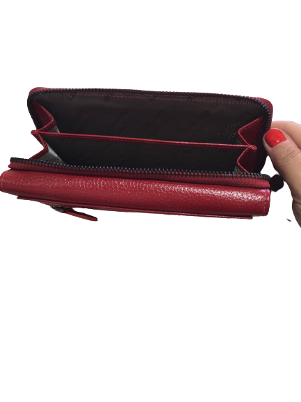Μπορντώ Γυναικείο Δερμάτινο Πορτοφόλι με Φερμουάρ Πολλαπλών Θέσεων . Με θήκες για κέρματα και κάρτες και επιπλέον φερμουάρ .Κατασκευασμένο από άριστης ποιότητας δέρμα .Διαστάσεις 18,5 x 9 x 3,5.