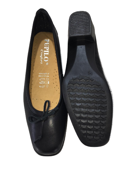 Γυναικεία Δερμάτινη Ανατομική Γόβα Μαύρη με Φιογκάκι