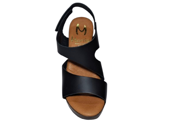 Marila 24004-29 Γυναικεία Δερμάτινα Μαύρα Πέδιλα. Με δέρμα Α΄Ποιότητας και αφρό μνήμης στον πάτο για άνετο βάδισμα . ΄Υψος τακουνιού 9 εκατοστά .