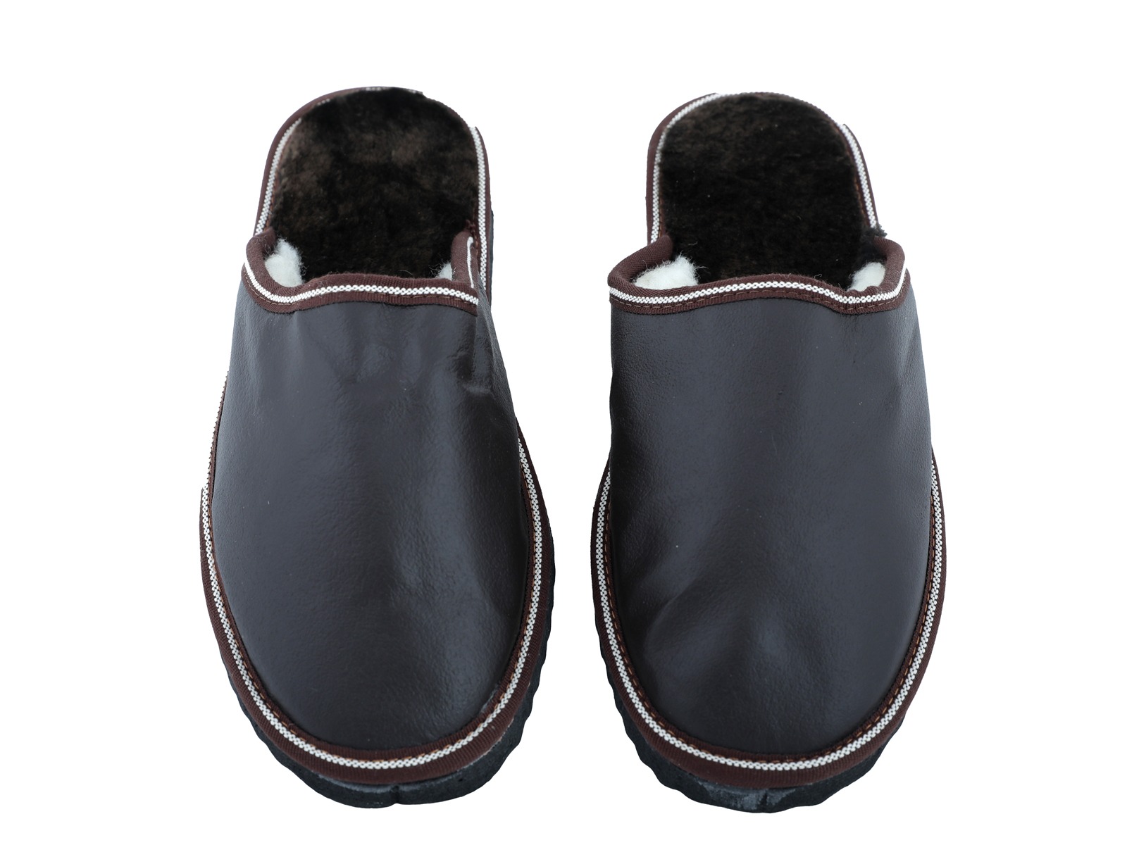 Ανδρικές Καφέ Δερμάτινες Παντόφλες Καστοριάς με Γούνα