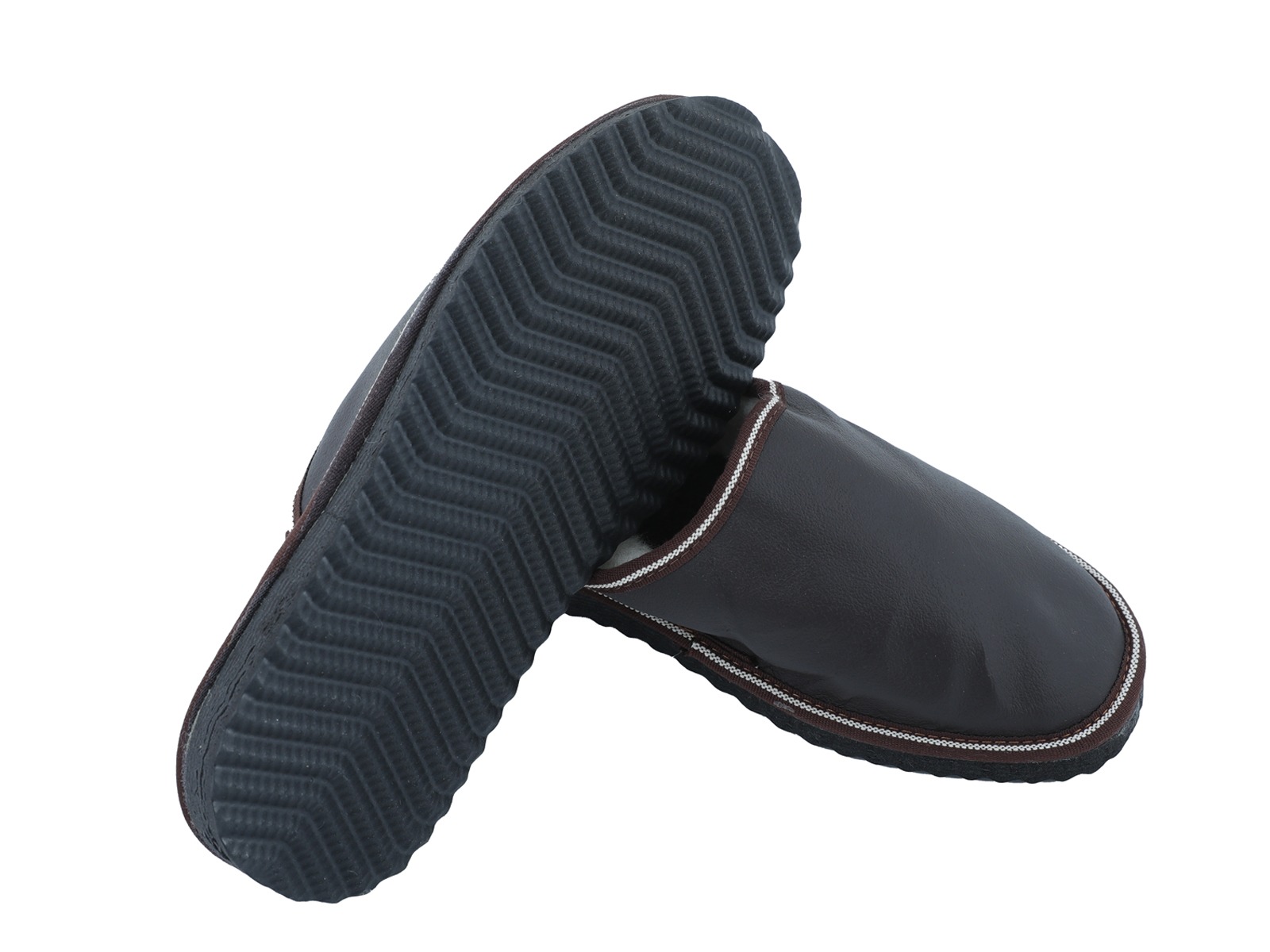 Ανδρικές Καφέ Δερμάτινες Παντόφλες Καστοριάς με Γούνα . Κατασκευασμένες από άριστης ποιότητας υλικά και δέρμα . Πολύ ζεστές και άνετες για τις κρύες μέρες του χειμώνα .