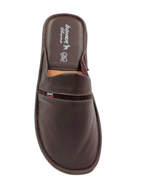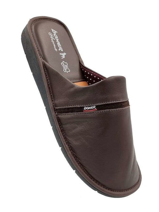 Boxer 18044 Ανδρικές Δερμάτινες Καφέ Παντόφλες