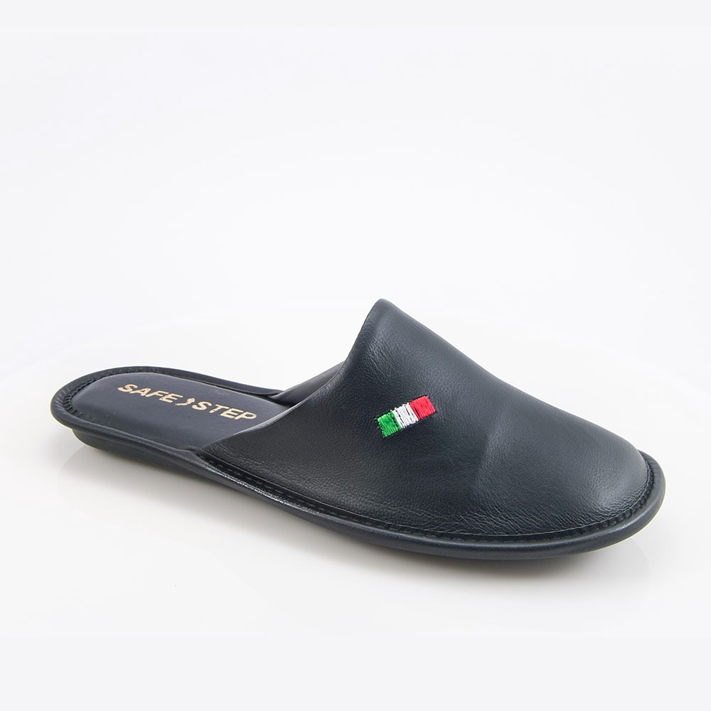 Safe Step 241160 Ανδρικές Δερμάτινες Ανατομικές Παντόφλες Μπλε . Με δέρμα Α' Ποιότητας εξωτερικά και εσωτερικά και δερμάτινο πάτο . Ύψος σόλας 1,5εκ. Η φόρμα είναι κανονική .