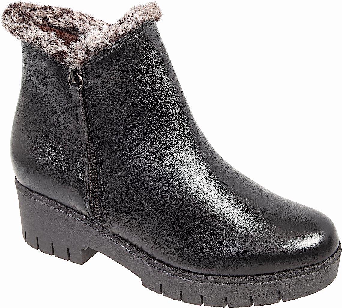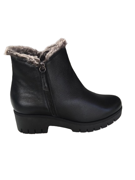 Γυναικεία Μαύρα Δερμάτινα Μποτάκια Marila με διακοσμητική γούνα .Κατασκευασμένα από άριστης ποιότητα δέρμα και σόλα κατά των κραδασμών. Ύψος τακουνιού 5 εκατοστά και φερμουάρ για άνετη εφαρμογή.