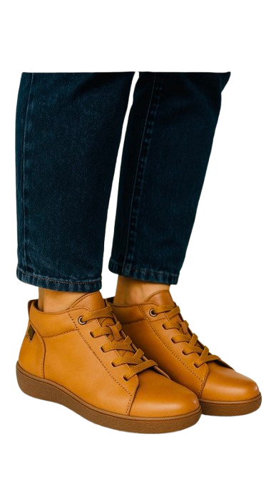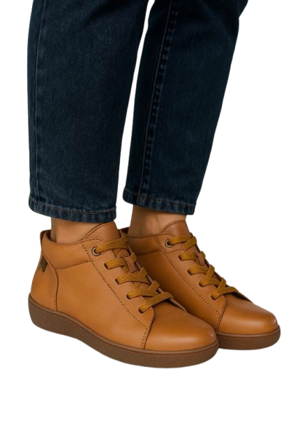 Soft Step 9003 Γυναικεία Δερμάτινα Ημίμποτα Ταμπά .Με δέρμα Α΄Ποιότητας εσωτερικά και εξωτερικά . Ελαστικά κορδόνια για άνετη εφαρμογή . Σόλα 3εκ. αντιολησθητική , με κρεπ τζελ κατά των κραδασμών . Κατάλληλα για πολύωρη ορθοστασία και περπάτημα .