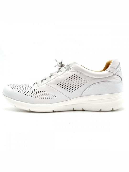 Safe Step 90505Δερμάτινο Γυναικείο Ανατομικό Sneaker σε Λευκό Χρώμα με Ασημί λεπτομέρειες