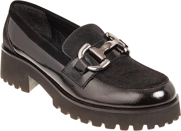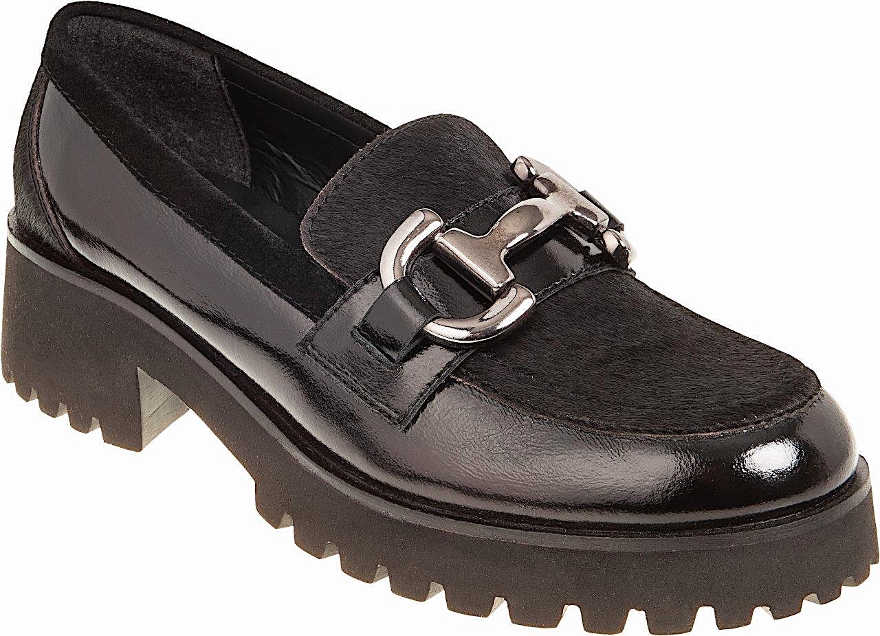 Adam's 24507 Γυναικεία Δερμάτινα Loafers Μαύρα . Με δέρμα λουστρίνι και τρίχωμα πόνυ . Μεταλλικός κρίκος για elegant εμφάνιση . 'Ανετα με ύψος σόλας 4 εκατοστά.