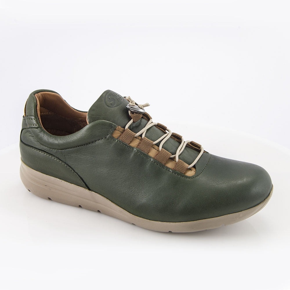 Safe Step 40402 Γυναικεία Ανατομικά Sneakers Χακί Δερμάτινα .Κατασκευασμένα από άριστης ποιότητας δέρμα και εσωτερικά πάτο ανατομικό δερμάτινο .Με κορδόνια λάστιχο για άνετη εφαρμογή και σόλα κατά των κραδασμών ,κατάλληλα για ορθοστασία και πολύ περπάτημα .Συνολικό τακούνι 3,5εκ.