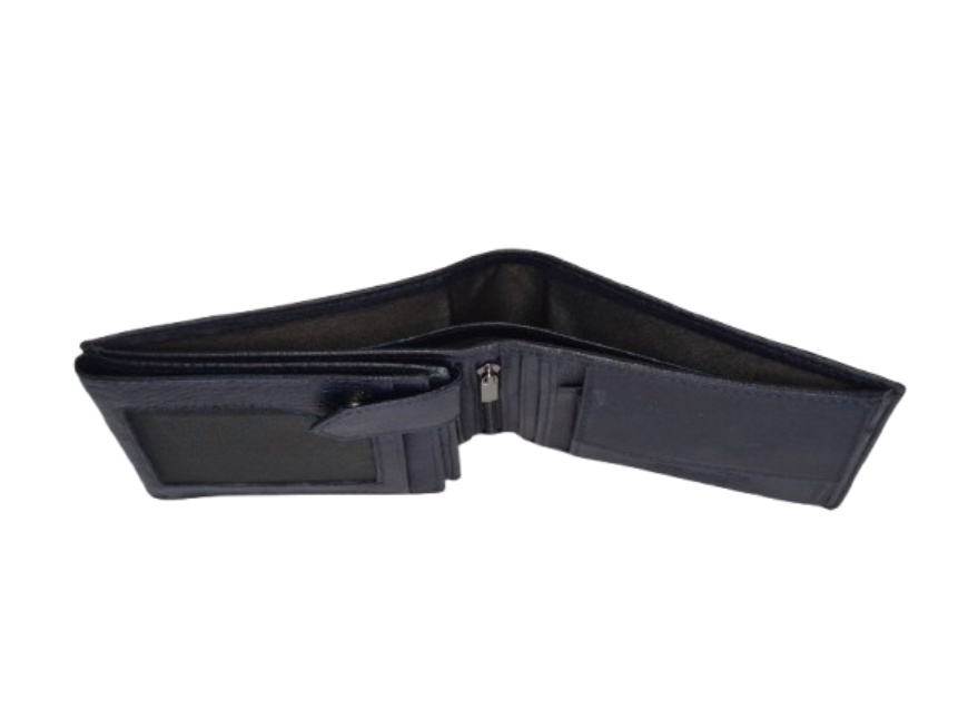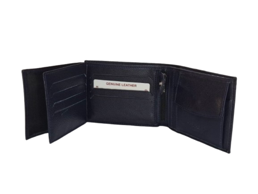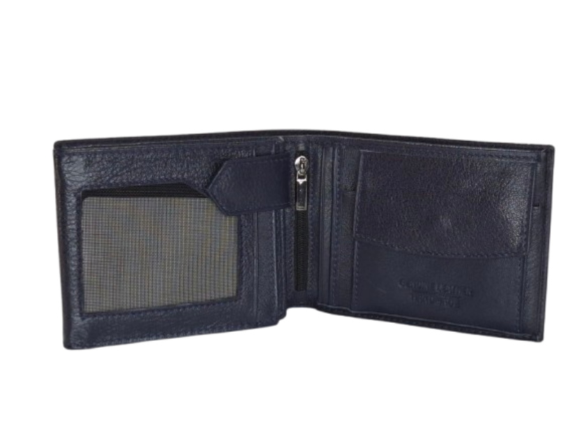 GP & MAX Ανδρικό Δερμάτινο Μπλε Πορτοφόλι . Με δέρμα Α΄Ποιότητος εσωτερικά και εξωτερικά .Θέση για κέρματα και πολλές θέσεις για κάρτες και νέου τύπου ταυτότητα . Διαστάσεις 12 x 9 x3.