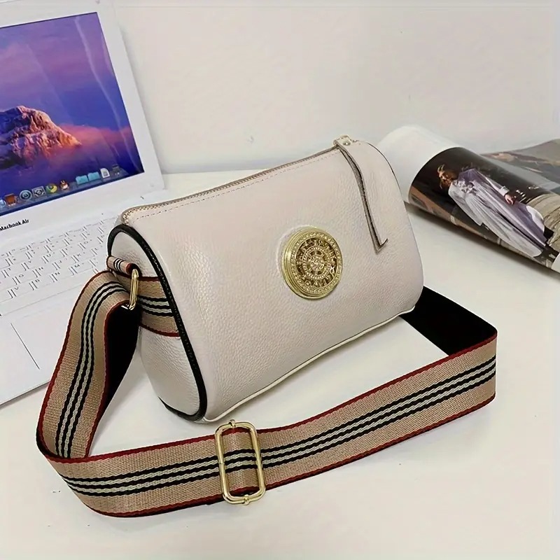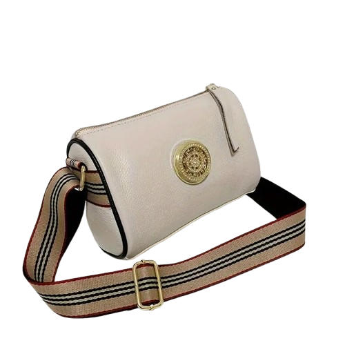 GP & MAX 725 Γυναικεία Δερμάτινη Τσάντα 'Ασπρο Χρώμα . Με δέρμα μοσχάρι Α' Ποιότητας . Φαρδύ, ριγέ λουρί και φερμουάρ στο κλείσιμο. Διαστάσεις 22 x 15 x 10.