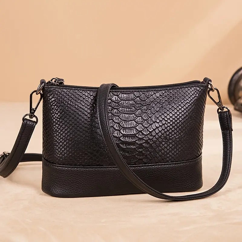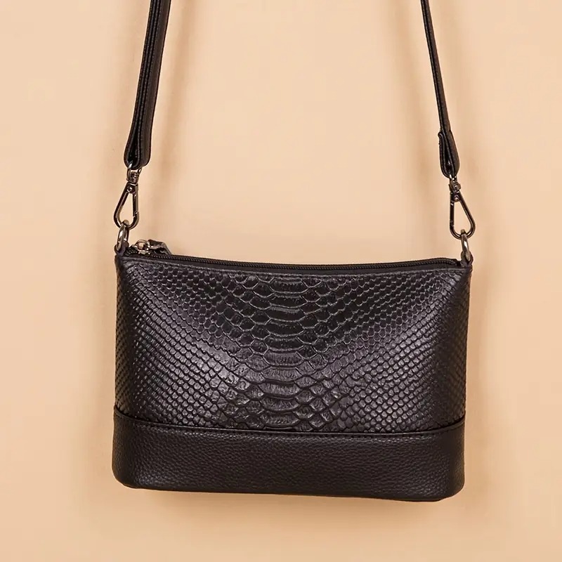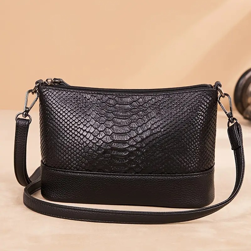 GP & MAX 735 Γυναικεία Δερμάτινη Τσάντα Φιδέ Μαύρο Χρώμα